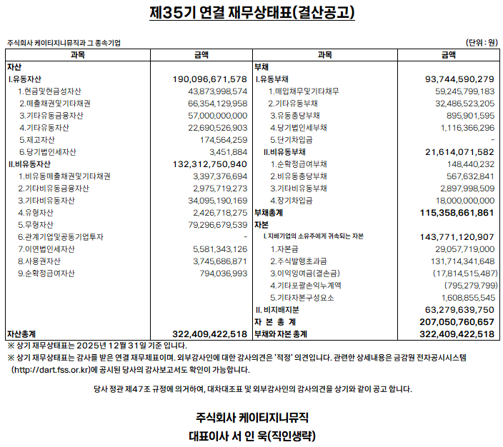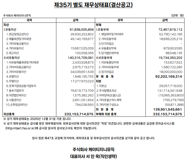 [결산공고] 제35기(2025.1.1~2025.12.31) 대차대조표 공고
